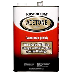 Rust-Oleum® Acetone is the strongest and the fastest evaporating solvent available. Recommended for thinning many types of epoxy and fiberglass resins.