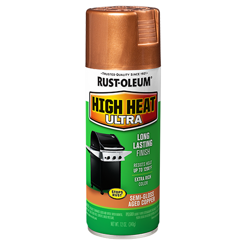 Rust-Oleum® High Heat Spray Paint retains colour and finish up to 1200º F. Apply to grills, wood-burning stoves, engines or other metal items. Provides rust protection. Most Rust-Oleum® paints withstand surface temperatures up to 200°F.